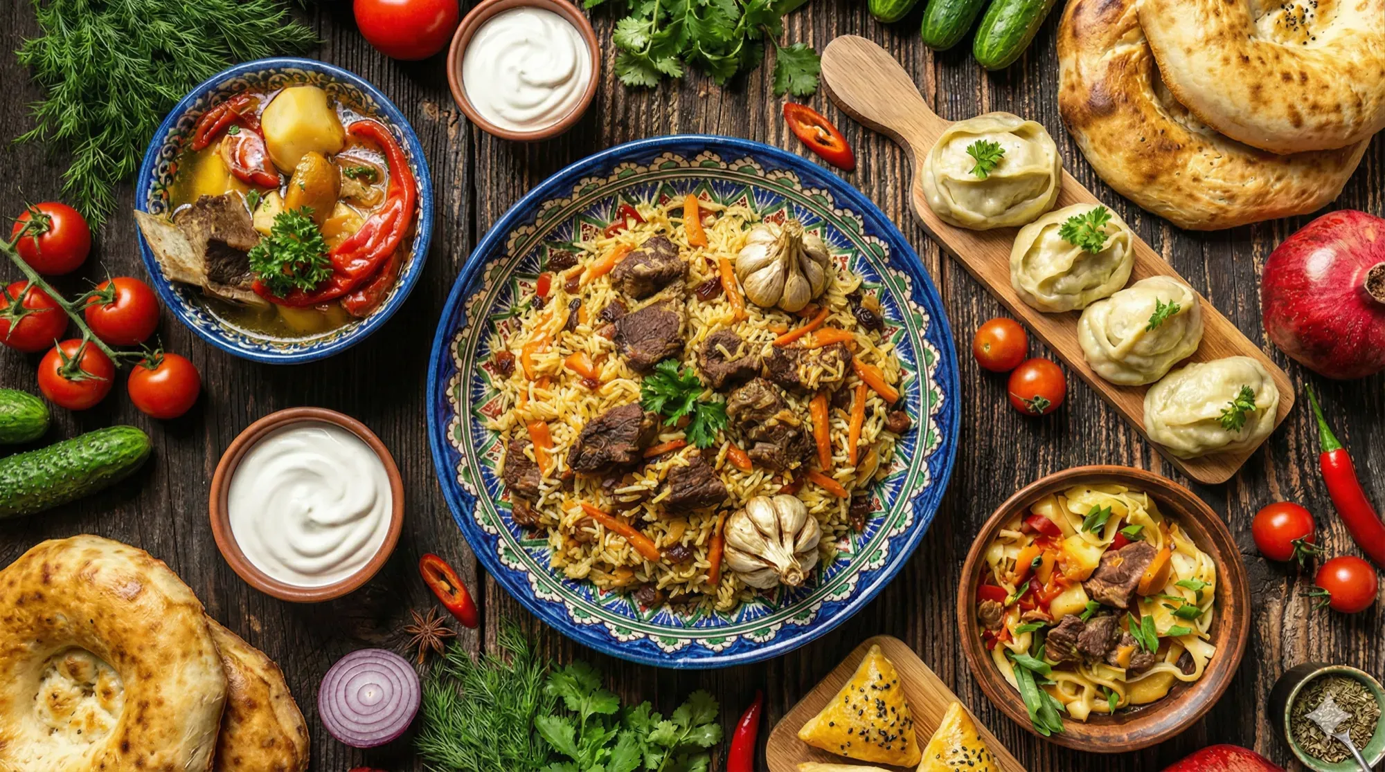 Hand-pulled noodles, slow-cooked plov, steamed manty. Family recipes made fresh daily.